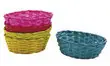 Corbeilles en bambou de 5 coloris différents : rouge, rose, jaune, bleu, vert.